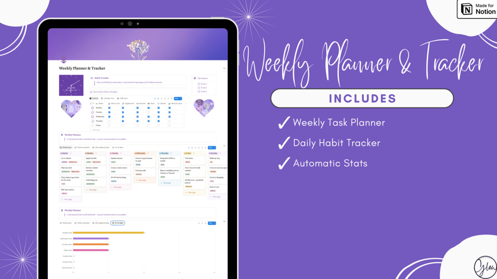 The Weekly Planner & Habit Tracker template was thoughtfully designed to help you plan your days clearly and stay consistent with the habits that matter most to you.